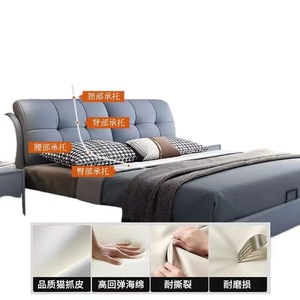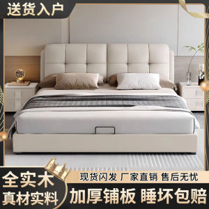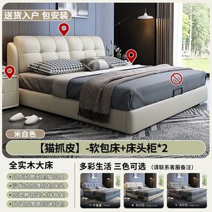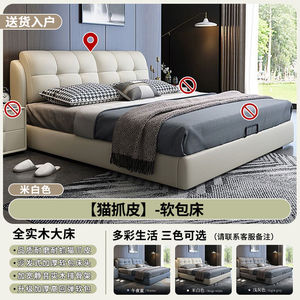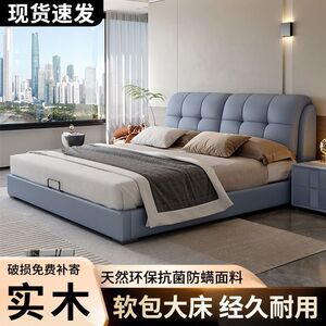 简约软包实木皮床1.8x2米双人床主卧大床家用卧室1.5米单人床直销