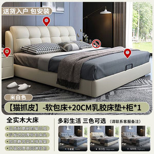 米白皮艺床+20cm乳胶垫+柜*1【包安装】