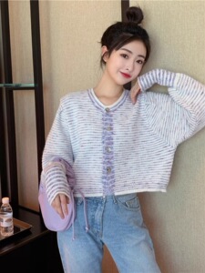 早秋款2025新款高级感超好看爆款上衣复古软糯风开衫毛衣紫色外套
