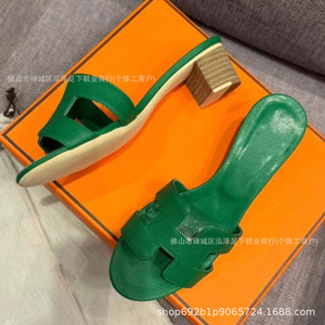 h家粗跟拖鞋女外穿2025夏季新款网红百搭真皮百搭旅游沙滩一字拖
