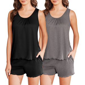 春夏亚马逊欧美女士家居服套装背心上衣短裤两件套装休闲睡衣女