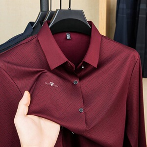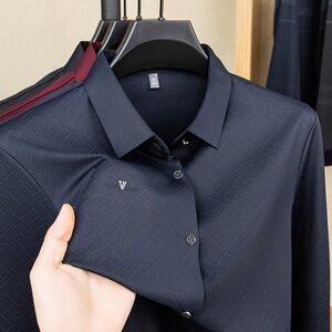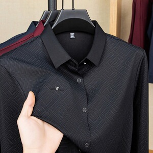 2025喜爸爸装参加结婚宴春季礼服公公长袖衬衫无痕抗皱男士衬衣