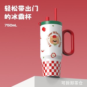 大容量保温杯手柄吸管316不锈钢花茶果茶居家办公女生高颜值水杯
