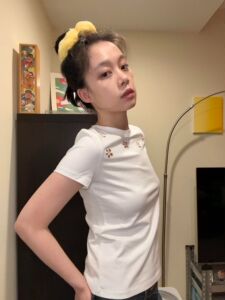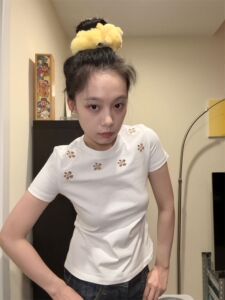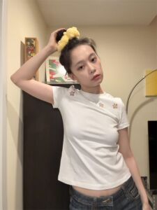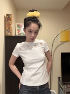 镂空刺绣花朵正肩短袖T恤女夏季小众设计感修身显瘦短款上衣批发