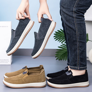 鞋子男鞋新款休闲鞋一脚蹬轻便浅口舒适板鞋条纹软底爸爸单鞋代发
