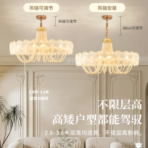 法式奶油客厅吊灯设计师款高级主卧轻奢餐厅简约网红玻璃卧室灯具