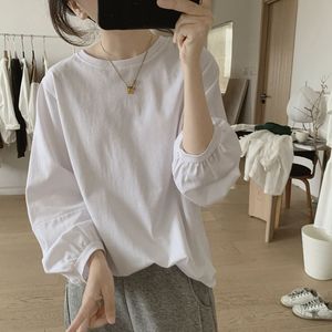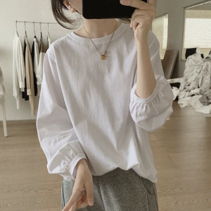 胖MM特大码300斤法式休闲灯笼袖t恤女秋季宽松简约百搭九分袖上衣