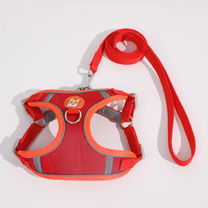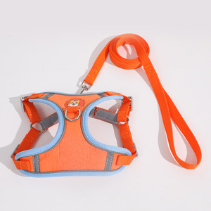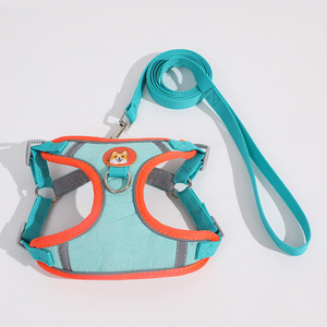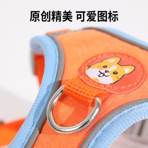 狗牵引绳胸背带结实耐用涤纶袋装拼色麂皮绒反光 狗狗胸背带