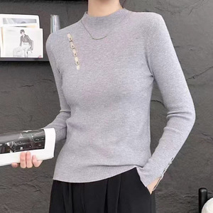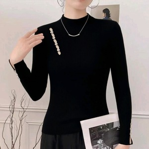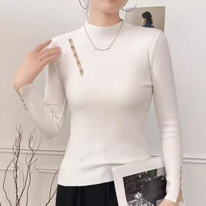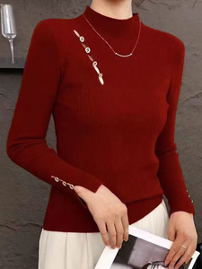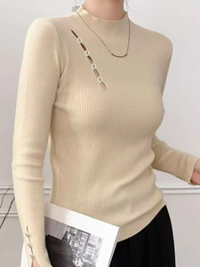 设计感半高领镂空纯色针织衫女2025秋季新款修身显瘦长袖打底上衣