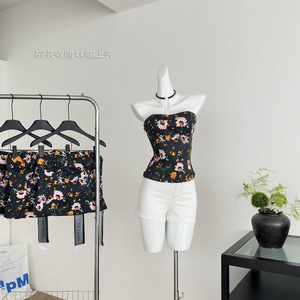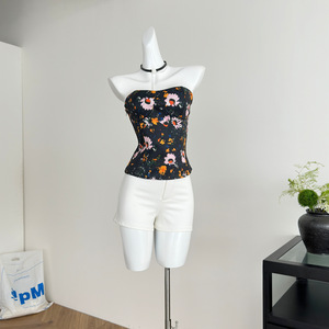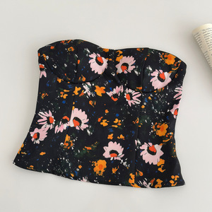 意大利100%天然植物棉Sumedeep碎花收腰抹胸上衣