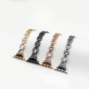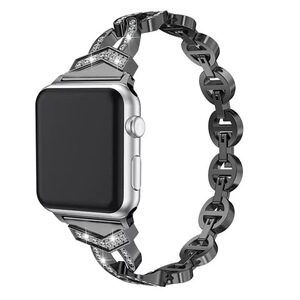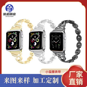 适用于苹果手跨境专供镶钻金属表带镶钻表带不锈钢三珠iwatch通用