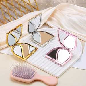 轻奢折叠化妆镜双面镜创意随身塑料镜迷你礼品桌面跨境便携梳妆镜