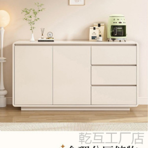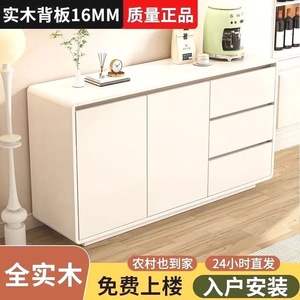 全实木餐边柜靠墙一体现代简约奶油风客厅圆弧收纳储物斗柜餐边柜
