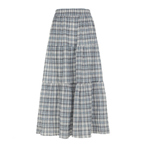 甜美风蓝色格纹拼接半身裙裙女2025夏季美式辣妹高腰A字裙长裙潮