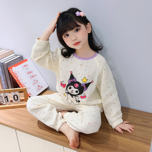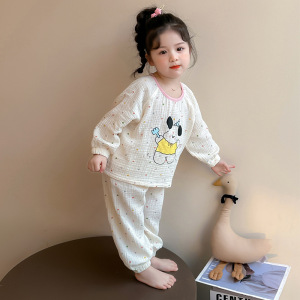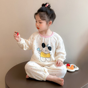 女童睡衣纯棉a类儿童纱布家居服春秋2025新款女孩宝宝长袖夏套装