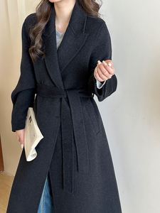 双面羊毛大衣女2025秋冬新款西装领中长款感赫本风毛呢外套绒