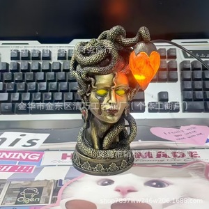 跨境新款Medusa Table Lamp美杜莎台灯雕像神话怪物树脂装饰品