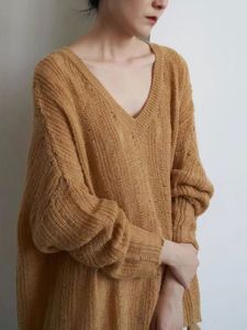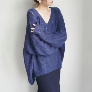春秋季新款慵懒风针织毛衣女宽松外穿镂空鸡心领休闲显瘦打底衫薄