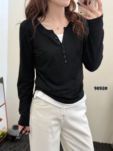 2025年秋款打底衫女宽松休闲韩版学院风假两件打底衫T恤亲肤上衣