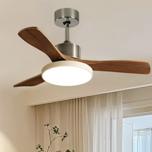 风扇灯中古风复古实木卧室餐厅灯扇一体灯智能变频静音吊扇灯中山