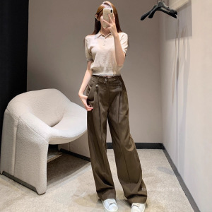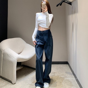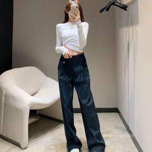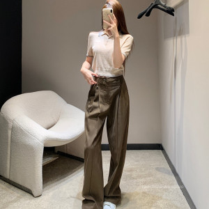 TOMOON 撞色松紧腰压褶休闲裤 休闲舒适显瘦百搭直筒长裤 ZK62896