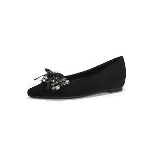 滨莉25秋季新款法式尖头法式高级水钻浅口蝴蝶结单鞋女百搭一脚蹬