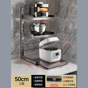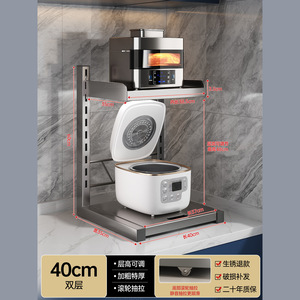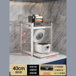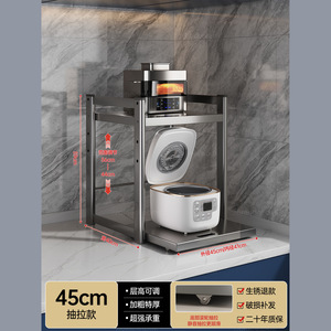可调节抽拉厨房微波炉置物架家用子双层带抽屉台面收纳烤箱架支架