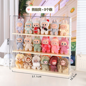 拉布布搪胶毛绒公仔收纳盒展示架适用泡泡玛特盲盒手办透明防尘柜