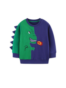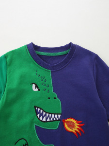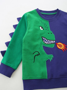 秋季新款男童卫衣欧美风时尚儿童圆领套头衫贴布恐龙中小童运动衫