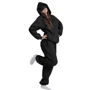 2025亚马逊欧美秋冬新款内置眼罩连帽衫纯色套头长袖卫衣保暖套装