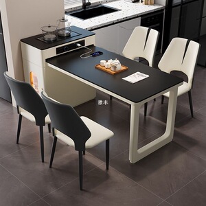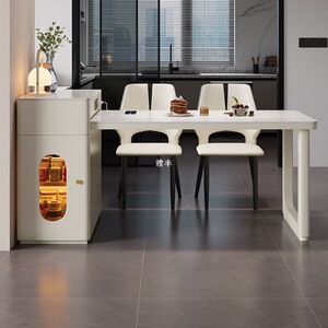 简约岩板岛台餐桌简约家用伸缩岩板多功能客厅小户型实木吃饭桌子
