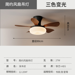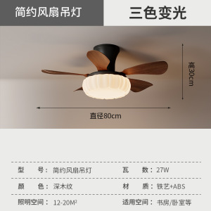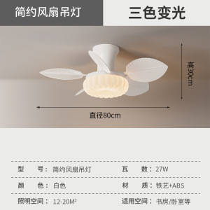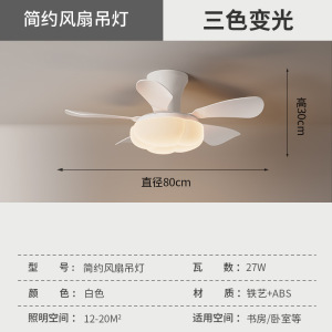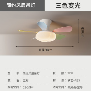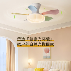 护眼全光谱儿童房简约风扇灯中古风卧室奶油风温馨吸顶灯吊扇灯