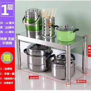加厚厨房用品置物架不锈钢单层微波炉架收纳调料储物放锅架子一层