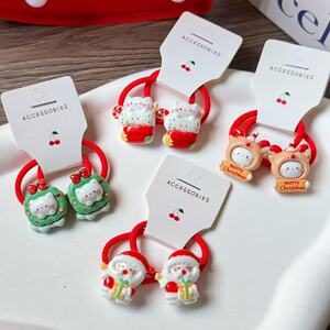 卡通圣诞系列发圈喜庆节日宝宝皮筋高弹力不伤发儿童发绳圣诞套装