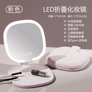 跨境热卖化妆镜带灯台式桌面学生宿舍家用可折叠便携式随身美妆镜