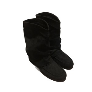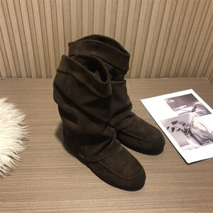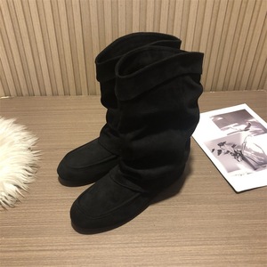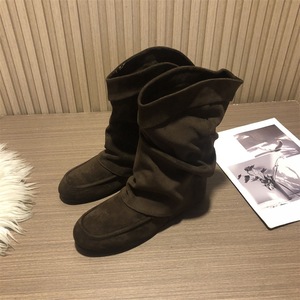 复古尖头中跟裤管靴女2025秋冬法式西部牛仔中筒靴骑士靴