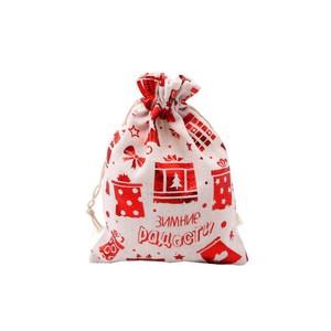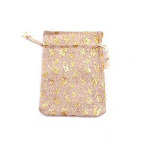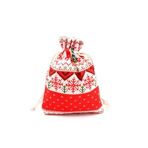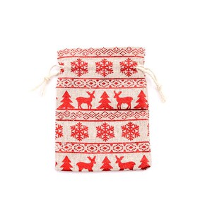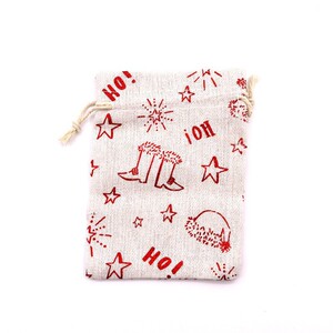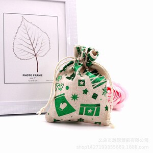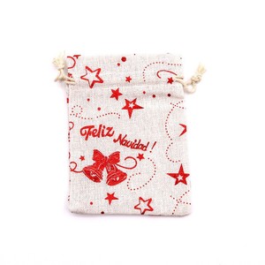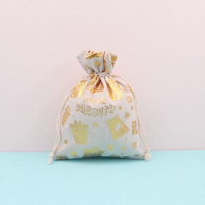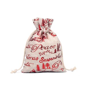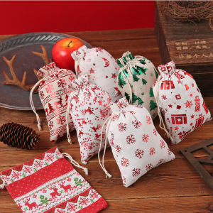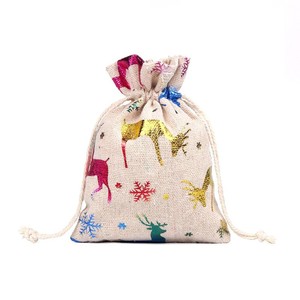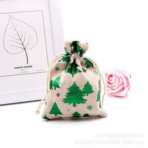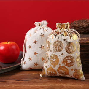 跨境新款圣诞节日礼品袋烫金棉布袋抽绳束口包装袋糖果礼物袋批发