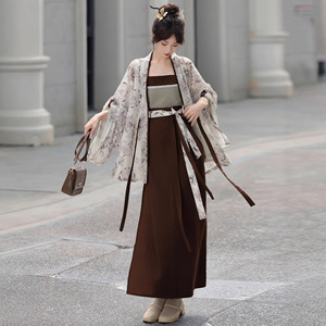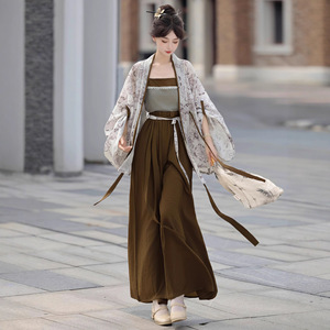 原创汉服女宋制对襟飞机袖松紧口袋长裤裙旋裙夏秋日常汉服