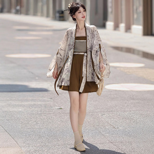 飞机袖+吊带+浅咖松紧短裤裙【送腰带】