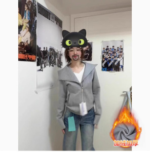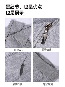 灰色拉链翻领卫衣【加绒】