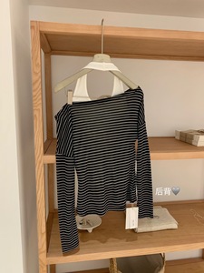WGWE6748#2025早秋新款挂脖吊带+长袖条纹T恤露肩罩衫上衣两件套
