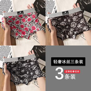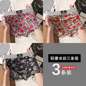 新款冰丝女士内裤纯色代发印花中腰女士内裤男大码透气女士平角裤