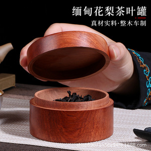 缅甸花梨木茶叶盒红木圆形收纳罐实木多用便携耳环戒指盒零食牙线
