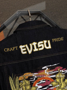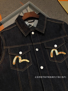 跨境批发25SS春秋新款EV福神刺绣男士牛仔外套夹克男女情侣款上衣