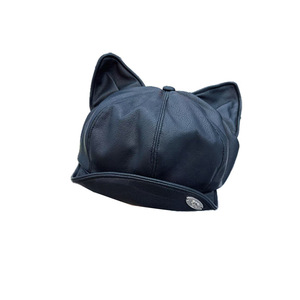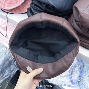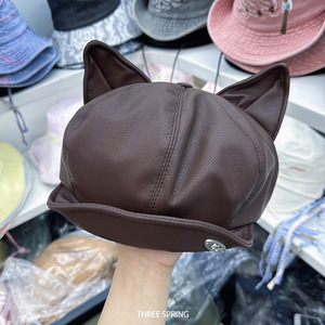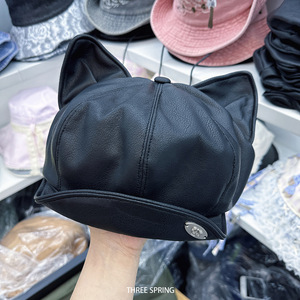 批发韩国2025年早秋新款秋冬耳朵PU皮报童帽女大头围显脸小画家帽