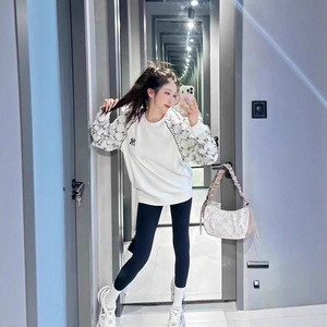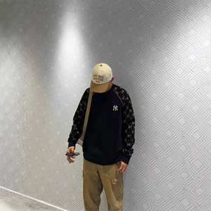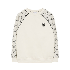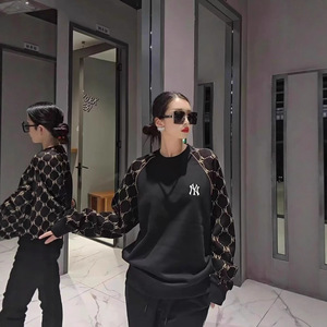 韩版秋冬新款mlb满印老花刺绣小标宽松休闲男女情侣款圆领卫衣潮.