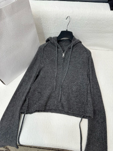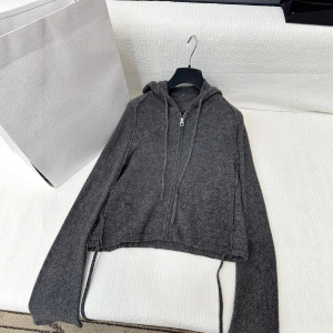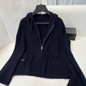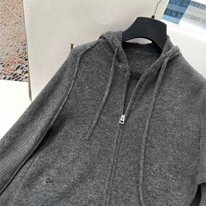 2025早秋新款南油Dio时尚韩系慵懒风简约连帽拉链长袖针织上衣女