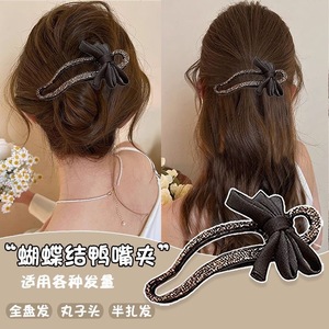 韩系蝴蝶结镶钻抓夹女气质后脑勺盘发夹新款时尚鸭嘴夹简约发饰