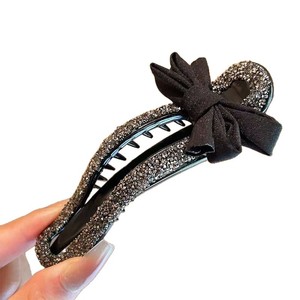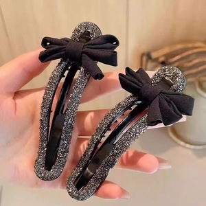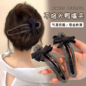 水钻鸭嘴夹黑色蝴蝶结发夹头饰女后脑勺高级感盘发抓夹一字夹发卡
