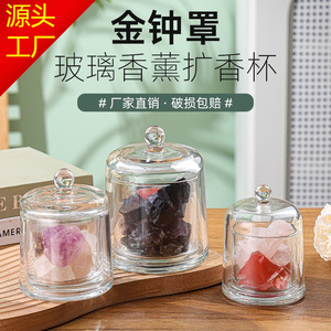 香薰玻璃杯金钟罩时尚带盖家用桌面铃铛杯玻璃蜡烛杯加厚玻璃器皿